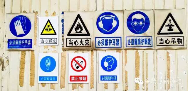 公司车间入口处张贴的各种警示标志,安全第一,预防为主!